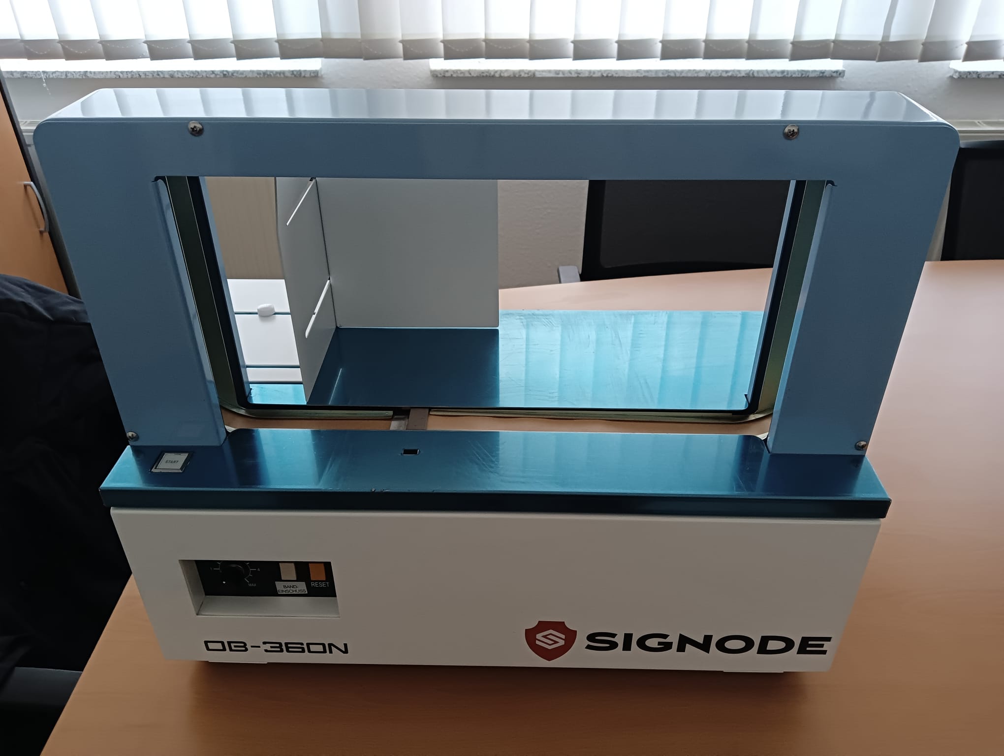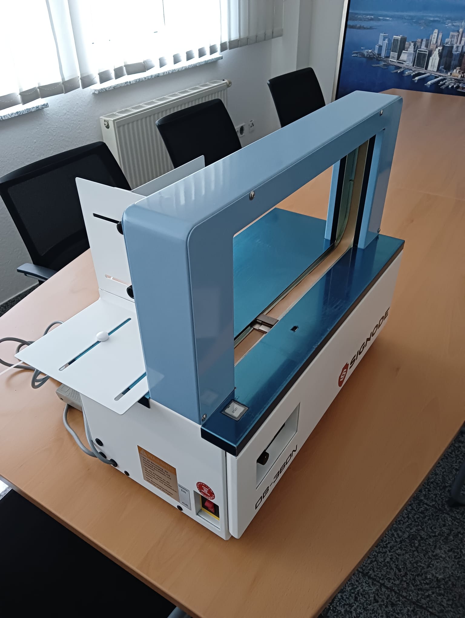 Banderolierer Akebono OB 360 N; Vorführmaschine; Format 420x210mm; Bandbreite 30mm; Automatikbetrieb oder per Fußschalter.