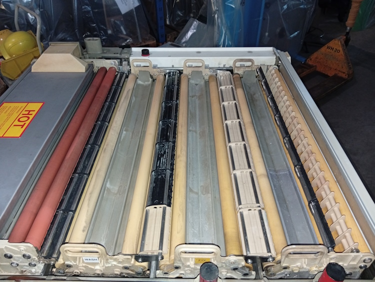 Filmentwicklungsmaschine G+J ML 720; Zustand revidiert; Arbeitsbreite 720mm; mit Tageslichtkassette (eine Walze fehlt).